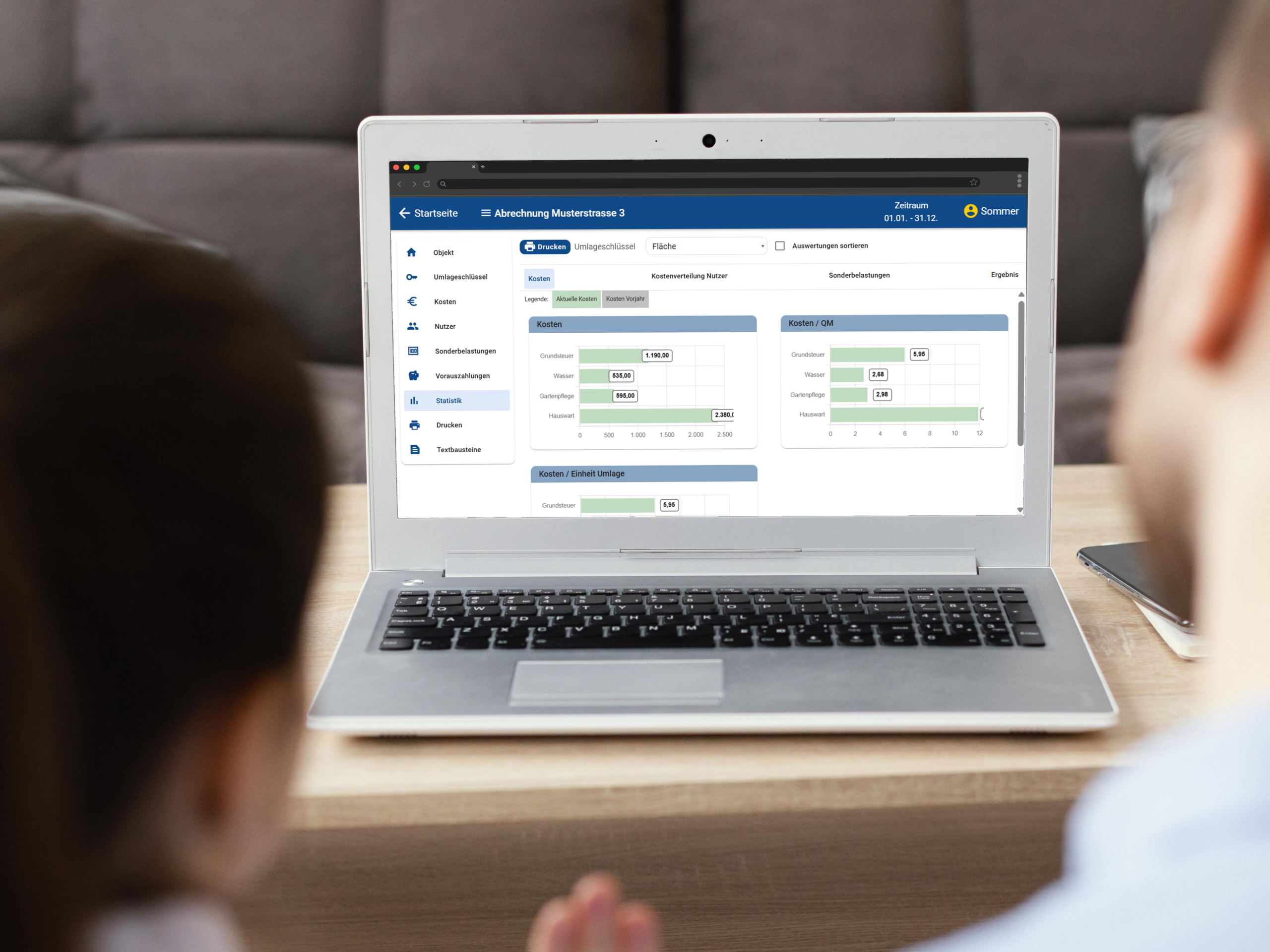 Dank klar strukturierter Module, individualisierbarer Umlageschlüssel und integrierter Prüfmechanismen behalten Sie jederzeit den Überblick über Kosten, Nutzeranteile, Vorauszahlungen und Nachforderungen.